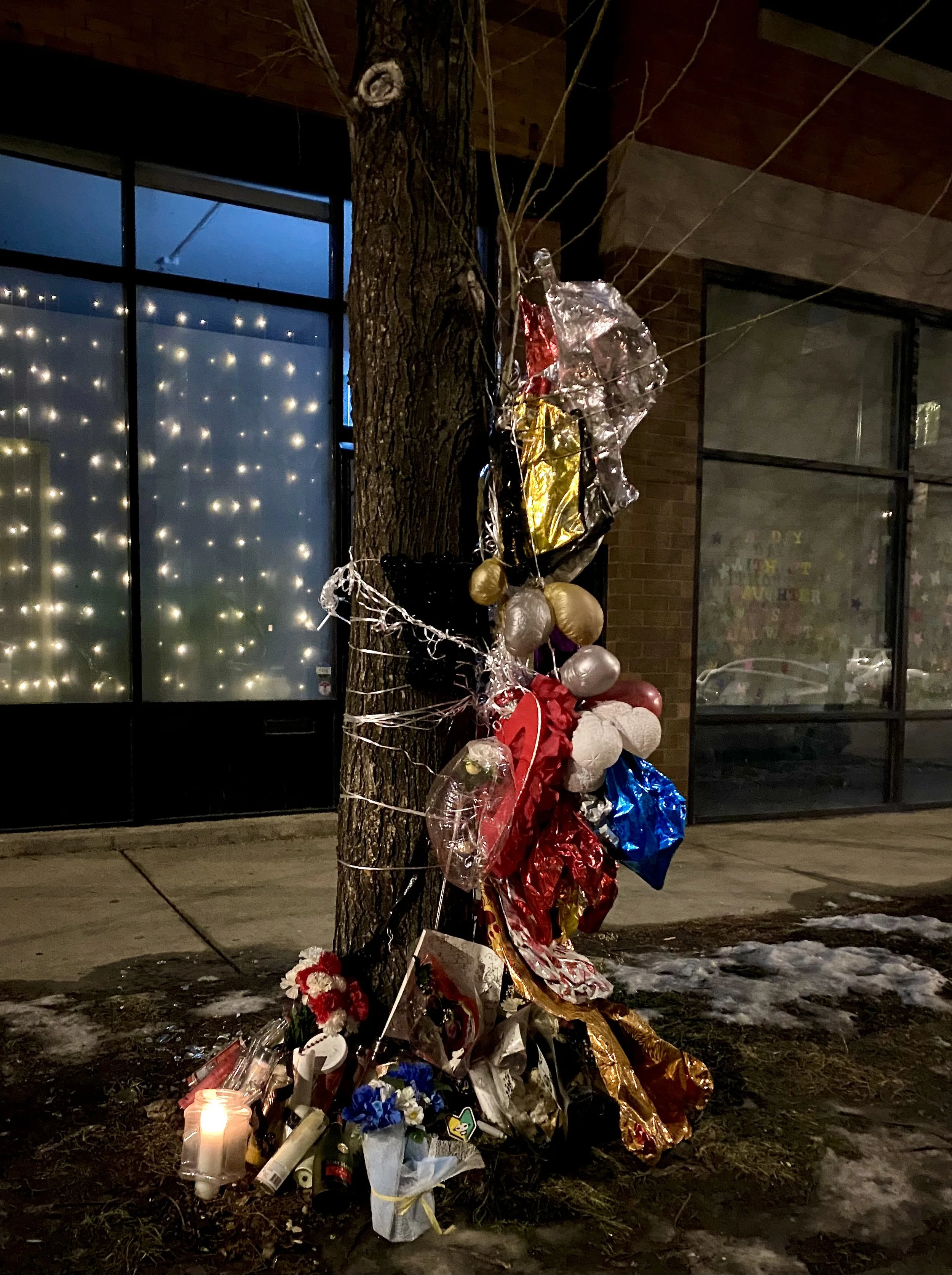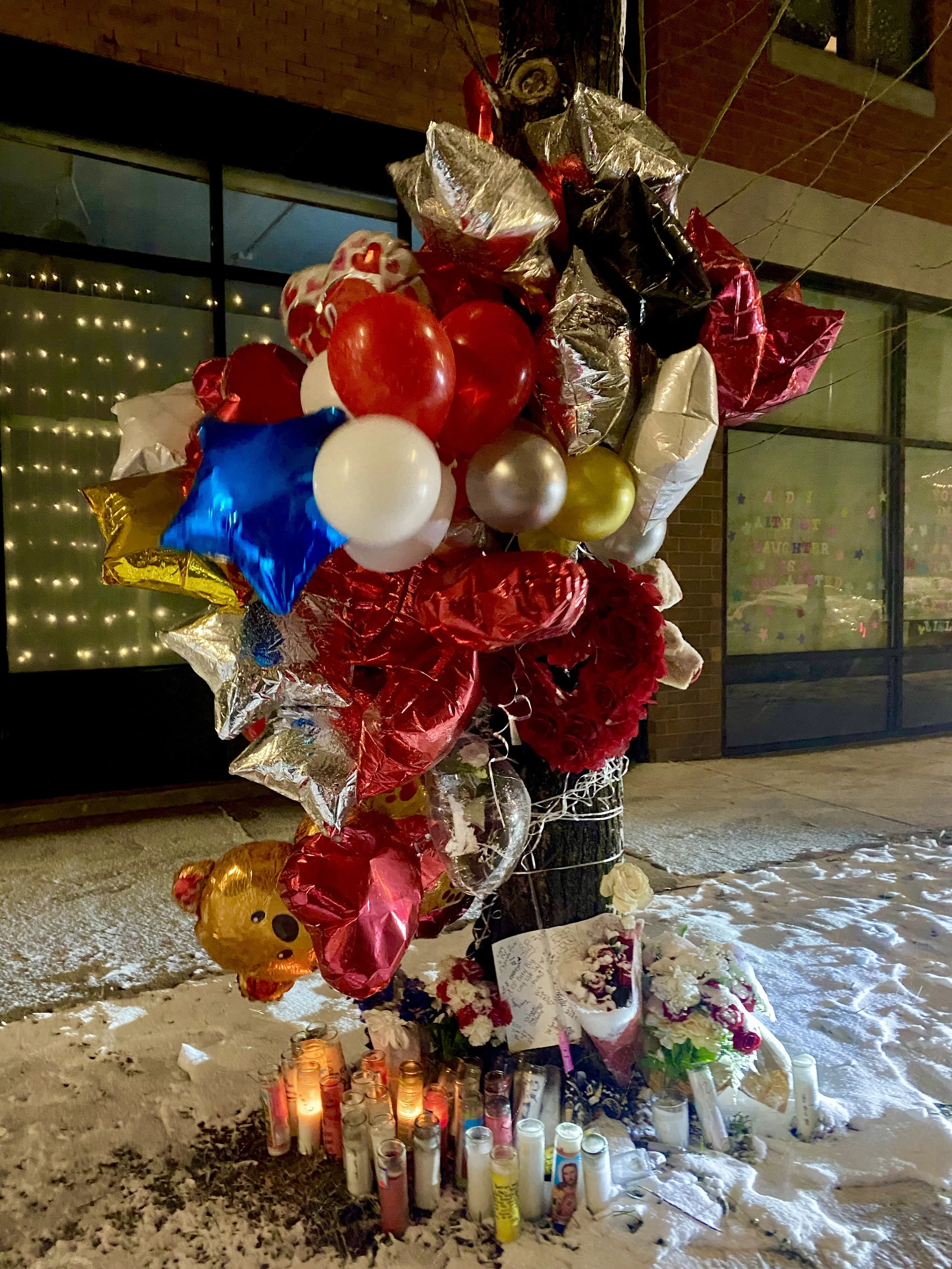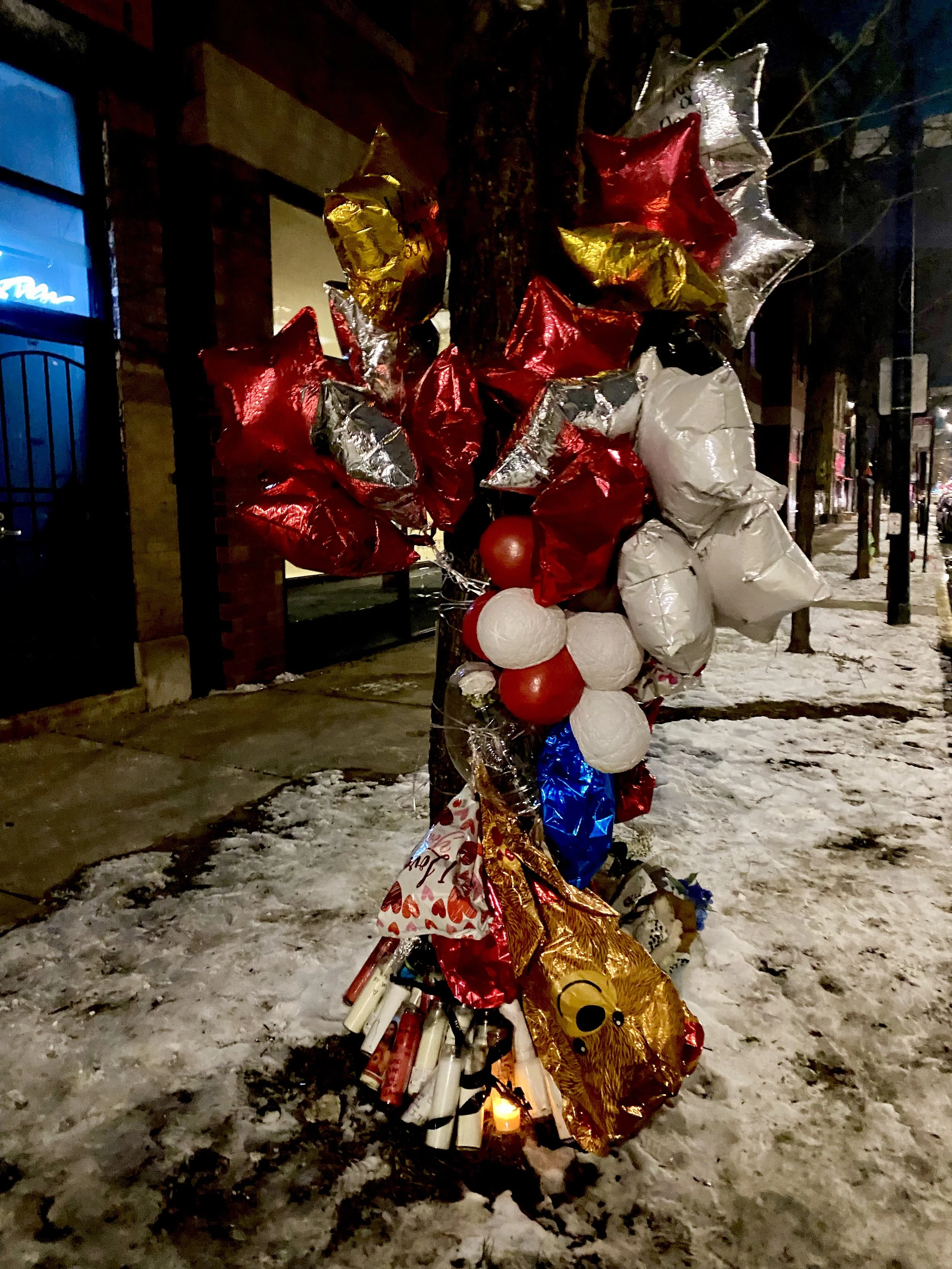 Slowly the life left this memorial yet still the memorial candle remained lighted. I don’t know if someone came by and relighted it as the winds were very strong in this Chicago winter.